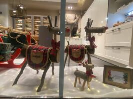 Yo bordé las palabras SANTOS y Oviedo y las chicas de Diseños Criselvi hicieron estas bonitas alforjas qué quedan chulisimas en los renos del escaparate de @santoscocinas .