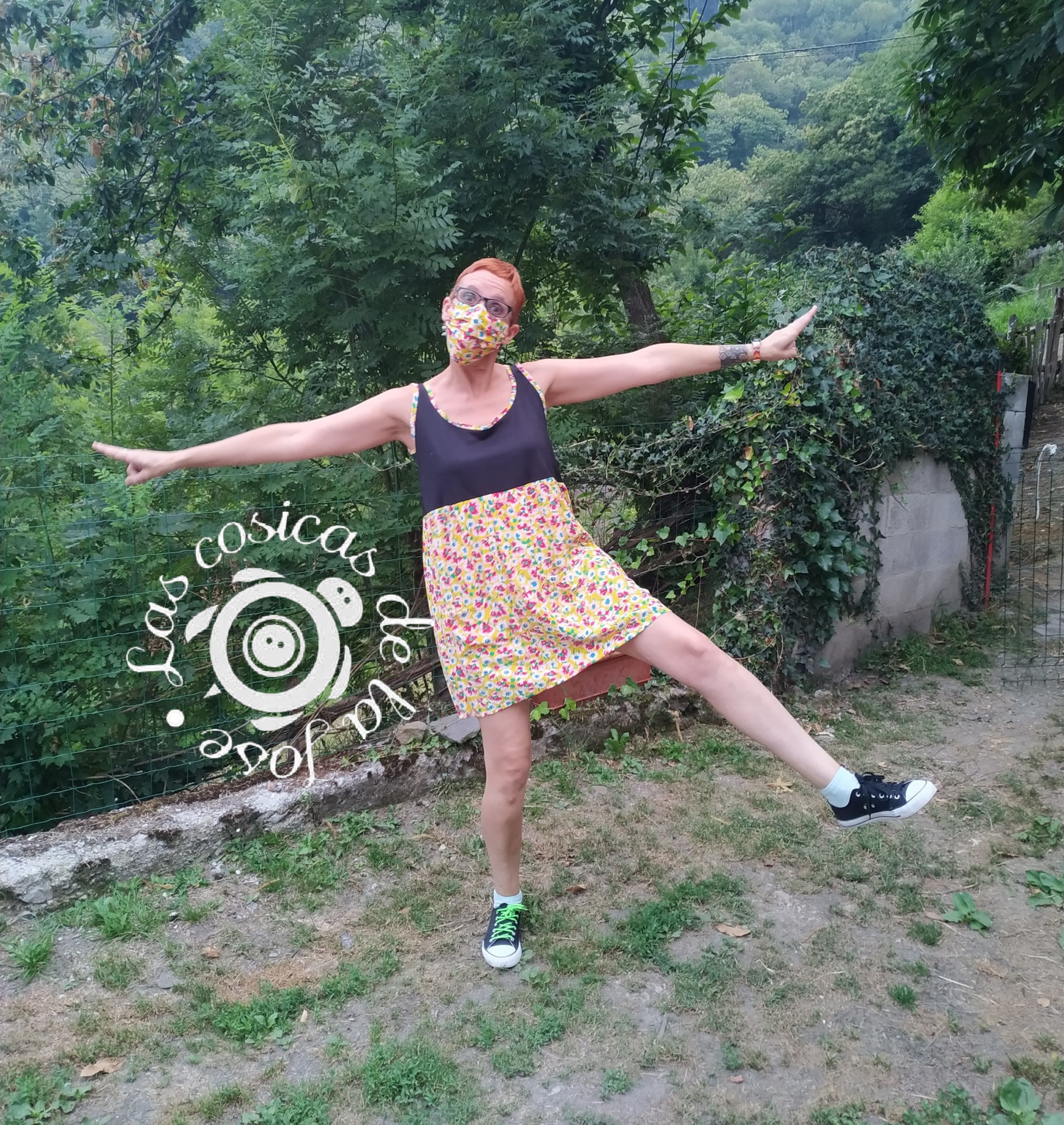 Y así es como de telas que tenía por casa me hice un vestido con mascarilla a juego en tonos amarillos.